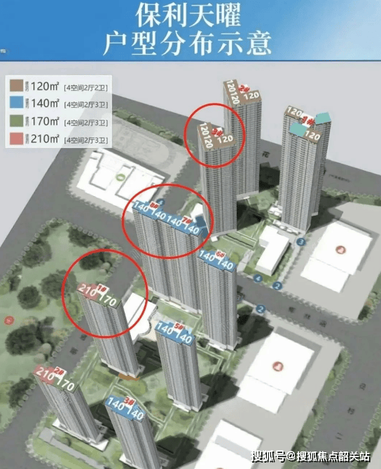 北地块小户型塔楼:包括B1栋47层、B2栋46层、B3栋45层,主推120平方米户型。