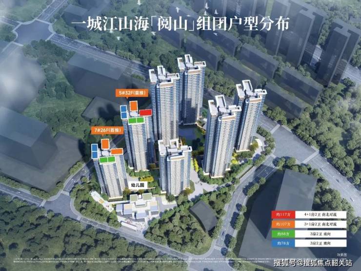 产品价值:78-117㎡三至五房,LDKB一体化设计,6.8米双联阳台,实际使用面积超区域同面积段产品20%。78㎡三房配置入户玄关、U型厨房,主卧270°飘窗;117㎡五房配备独立衣帽间、双台盆主卫,南向面宽达16米。