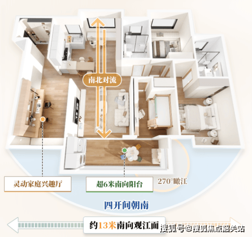 117平方米四房户型:此户型较为方正,南向布局,拥有6米长的阳台,视野开阔,景观优美,售价更高,但提供了更宽敞的生活空间。