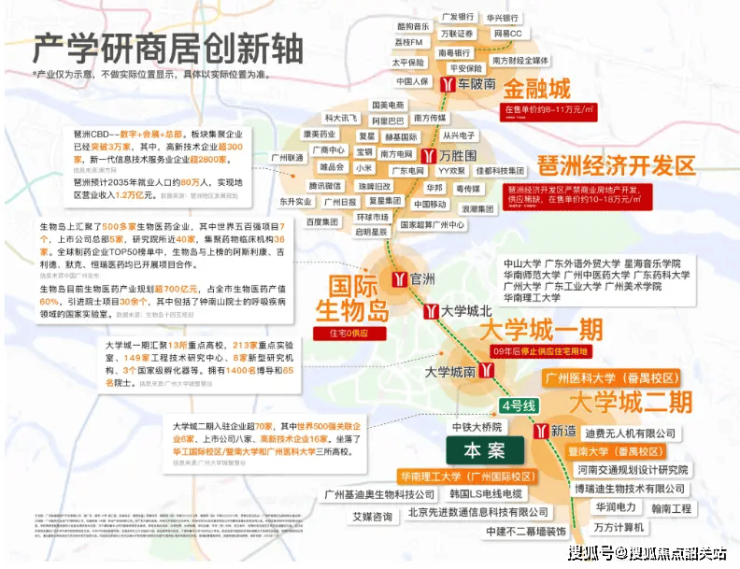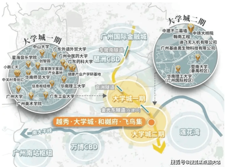 项目位于番禺大学城核心区,直线距离广东工业大学300米、广州大学500米,步行10分钟可达地铁4号线新造站(2026年延伸至佛山),驾车15分钟直达琶洲CBD。
