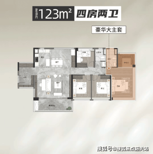 123㎡四房:卧室均可放置1.8米大床,居住体验对标144㎡大宅;