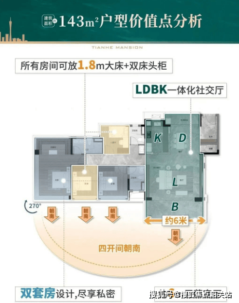 超高使用率+全南向设计:新规下仍实现超120%得房率,户户朝南,四开间采光;