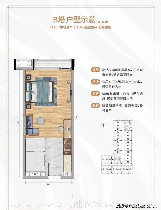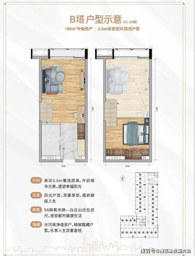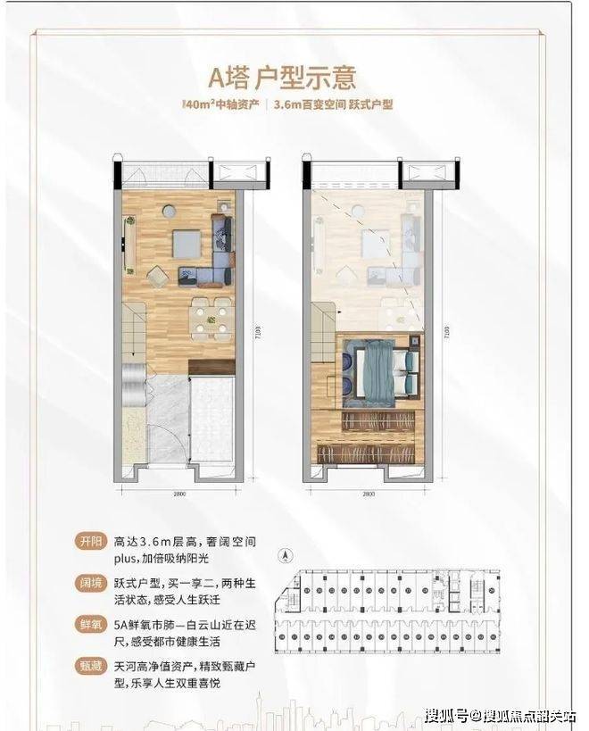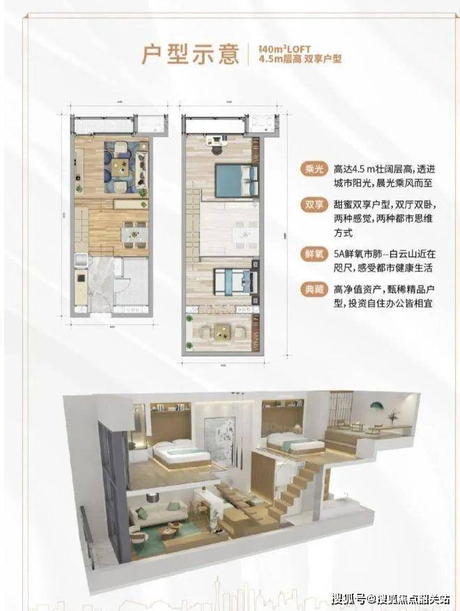 31 - 57㎡中轴资产:4.5 米层高魔方空间,创新 LOFT 中空挑高,功能复合型立体布局,卧室、厨房、卫浴全能配置。31㎡能量舱,为城市精英提供充电空间;45㎡梦想家,打造全能生活实验室;57㎡天际阁,带来墅级空间体验。以珠江新城 1/3 价格享中轴资产,买一层得两层,还有 U 型厨房、步入式衣帽间配置。