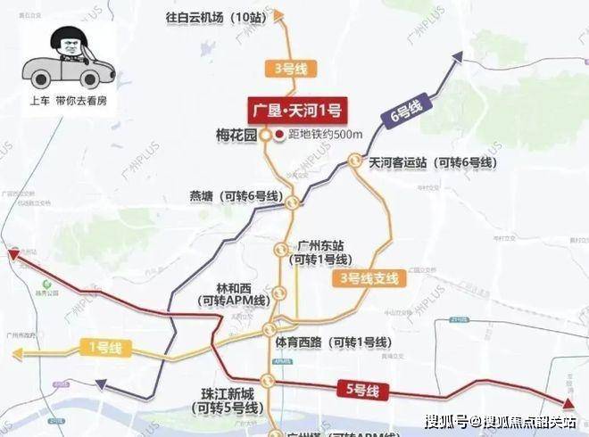 交通方面,项目西侧约 400 米即达地铁 3 号线梅花园站 B 出口,两站到广州东站枢纽,五站畅达珠江新城 CBD。同时,紧邻广州大道主干线,东向 2 公里衔接沙太路立体交通网,无缝对接环城高速等城市要道,半小时通达全城,1 小时畅达粤港澳大湾区核心城市。