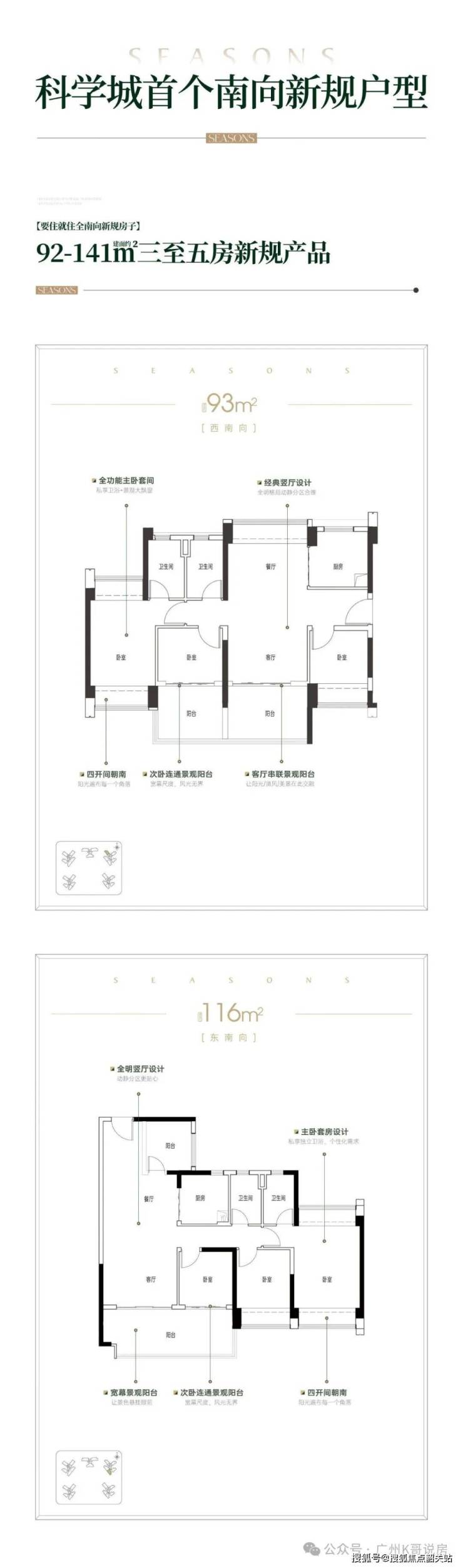 在户型设计上,项目实现了全南向布局,即便是 92㎡的小户型,也能实现优质的采光与通风效果,告别北向户型阴冷、采光不足的问题,让每一户都能享受充足的阳光。在户型覆盖上,项目充分考虑了不同客群的需求,92㎡三房户型,可满足天河通勤刚需家庭的居住需求,低门槛即可实现地铁通勤与全南向居住体验;116㎡四房户型,可适配二胎家庭的改善需求,实现功能空间的全面覆盖;141㎡五房户型,可满足多代同堂的终极改善需求,阔绰的空间可实现家庭各成员的独立居住空间,兼顾共同生活与私密需求,真正实现了一套房子适配家庭全周期成长。