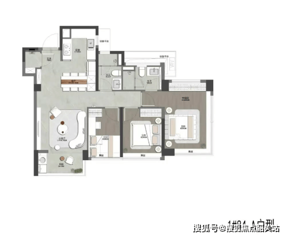建面约127㎡双阳台四房:南北对流双阳台设计,超宽客厅与阳台带来极强的尺度感,适合改善型家庭。