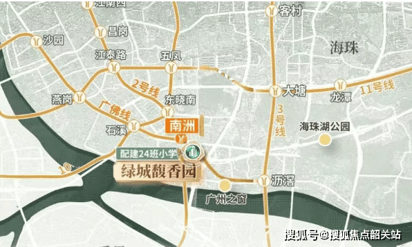 在寸土寸金的海珠中心区,交通便捷度往往是衡量楼盘价值的关键标尺。绿城馥香园在这方面交出了一份近乎完美的答卷。项目雄踞广佛线与2号线交汇的南洲站,真正实现了“双地铁上盖”。
