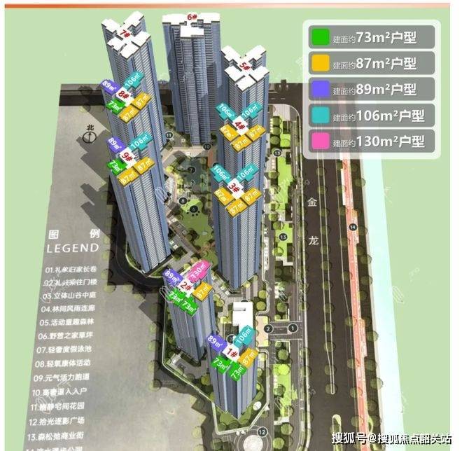 户型设计独具匠心。使用率约 130% ,阳台、飘窗、花池等多处赠送空间,所有户型阳台率达 20% ,相当少见。户户全南向,至少四开间朝南,采光通风优越。全系标配入户花园,可收纳或改造成工具间。还有 270° 环幕飘窗与大方厅,空间宽敞。73㎡三房满足小年轻上车梦,87㎡五空间实现入门级改善,106㎡户型适合三代同堂,130㎡户型做到 5 空间和双主套设计,各户型面积不大但空间灵活,满足家庭不同阶段需求,性价比极高。