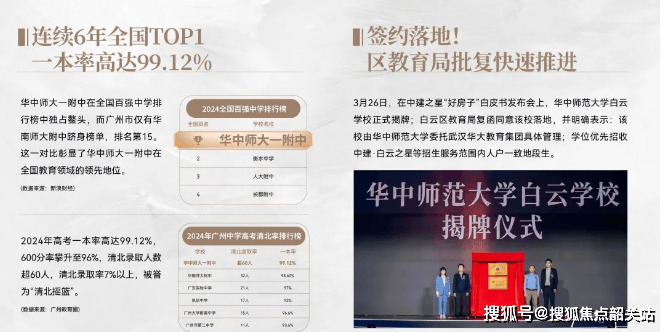 华中师大白云附属学校:公办九年一贯制学校,计划于2026年首批开学,校舍占地面积60亩,建筑面积4万平方米,配置96班优质学位。