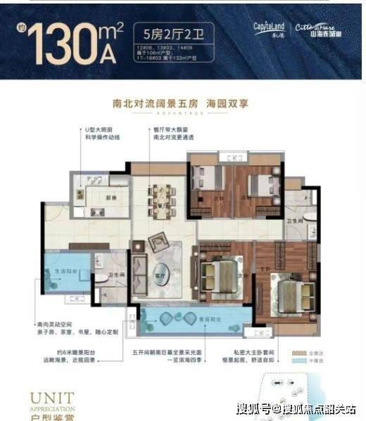 130-135㎡四至五房:横厅+双阳台,空间感强,适合多代同住;
