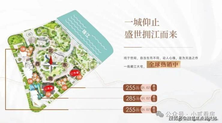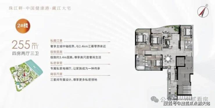 户型:建面约 233-285㎡四至五房,东向 / 东南向一线望江,极致 3.4-3.6m 层高