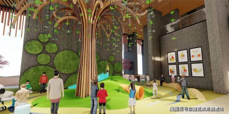 儿童乐园:分龄设计(0-3岁爬爬区/4-6岁探险区/7-12岁运动区);