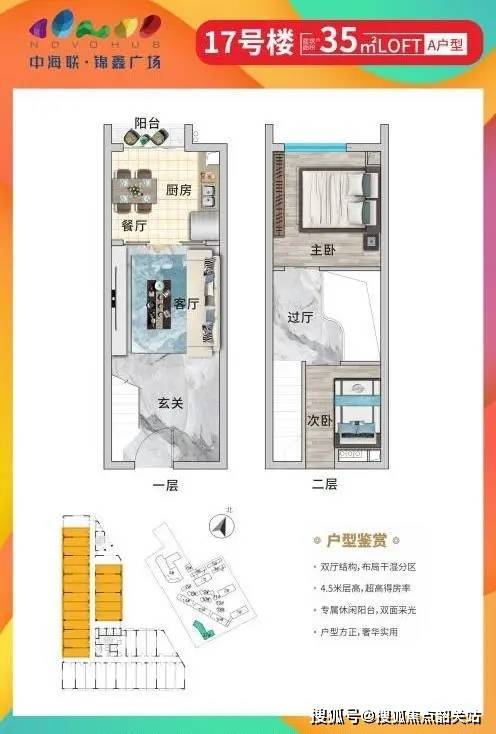 层高4.5米,奢阔挑空设计,买一层得两层,上下独立分区互不打扰,时尚生活轻松拥有。