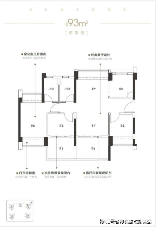 新世界四季山水主打92~141㎡的三至五房户型,所有户型均采用全南向设计,保证了良好的采光和通风效果。特别值得一提的是,该项目的户型设计具有极高的使用率,最高可达118%,为购房者提供了更多实际可用的空间。