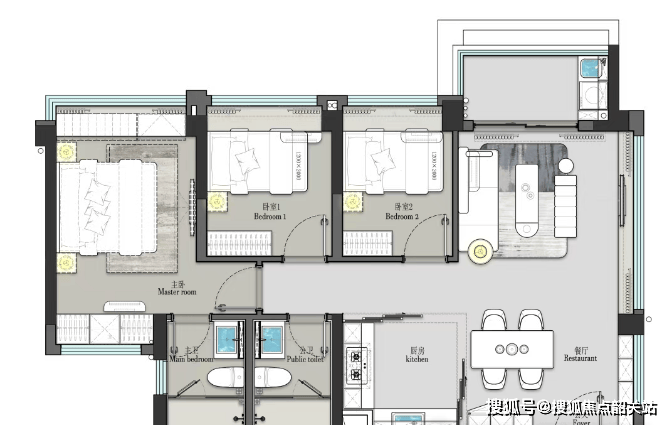 约78㎡三房两卫:同等面积下多一房,LDK互动布局带来多重趣味灵感,主卧全景飘窗尽显奢华。
