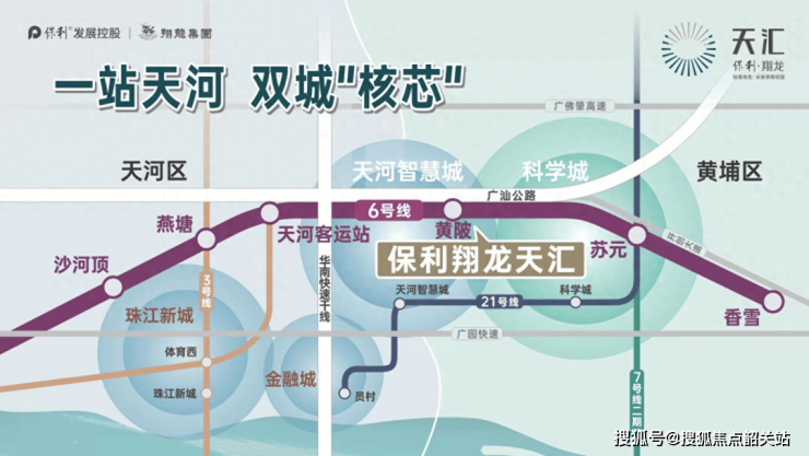 渴望在城市发展主轴上占据关键位置?保利・翔龙天汇屹立广州第三轴线,雄踞天河智慧城与黄埔科学城交汇核心 ,得天独厚的地段,使其成为双城资源汇聚的焦点。项目距黄陂地铁 B 口仅约 400 米,一站直达天河,无论是商务通勤还是休闲出行,皆能快速通达城市繁华处。以如此优越的区位,重新定义城芯生活的便捷与高效,让你轻松抢占双城发展红利,成为城市菁英向往的理想栖居地。