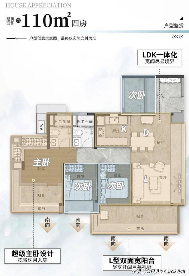 户型:90㎡三房做到南向四开间,110㎡四房带6.3米阳台,125㎡四房实用率超100%;