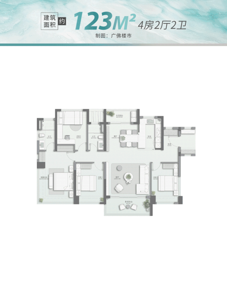 佛山招商青雲臺售楼处电话:400 - 828 - 5661 户型设计贴合佛山家庭需求,具有诸多亮点。每个户型都有南向4开间,强势占有南向资源,应对佛山潮湿气候,保证PLUS级采光和观景面。户型空间设计合理,做到空间人均平权,最小卧室12㎡起。以建面约123㎡户型为例,采用LDKG一体化方正设计,容纳多种场景,且约112%空间效能实现超值得房率,还有南北对流双阳台、270度全景舱主卧等优势。建面约139㎡户型更是“超配选手”,有开放式中西厨 + 岛台、主卧小家化等设计,还有百变X空间满足个性化需求。
