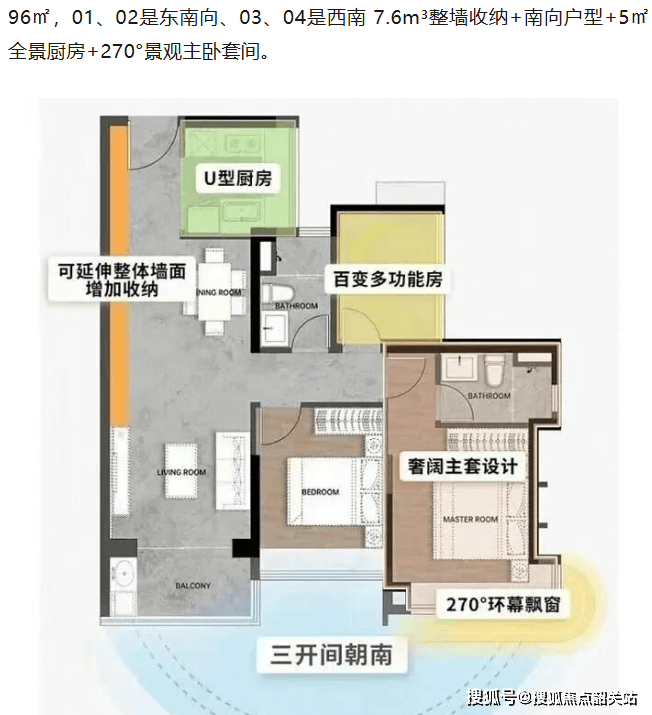 目前在售的户型面积涵盖了80平方米、96平方米、123平方米和140平方米的全南向三至四房设计。这些户型均采用了蝶形布局,确保每户都能享受良好的采光和视野,部分户型还能一览珠江江景。