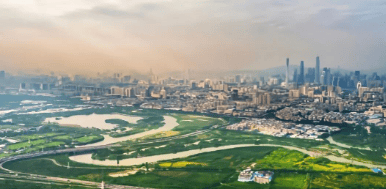 作为保利央企布局琶洲的力作,湖光悦色的底气,首先源于不可复制的生态资源。项目紧邻全球最大的市中心湿地公园——海珠国家湿地公园,这座总面积约1100公顷的“城市绿肺”,相当于7个伦敦海德公园、3个曼哈顿中央公园,这里生长着835种植物,栖息着539种昆虫、180种鸟类与69种鱼类,是净化空气的天然氧吧,更是城市中极为稀缺的生态秘境。除了湿地公园,项目3公里范围内还有海珠湖公园、瀛洲生态园、广州国际生物岛环绕,四大公园如同四扇“翡翠屏风”串联一体,十里云水相依,构成了世界罕见的城央生态集群。