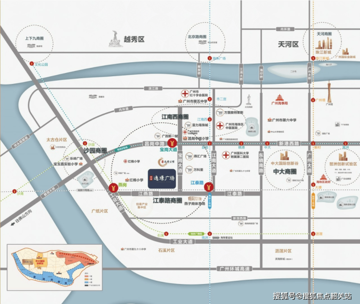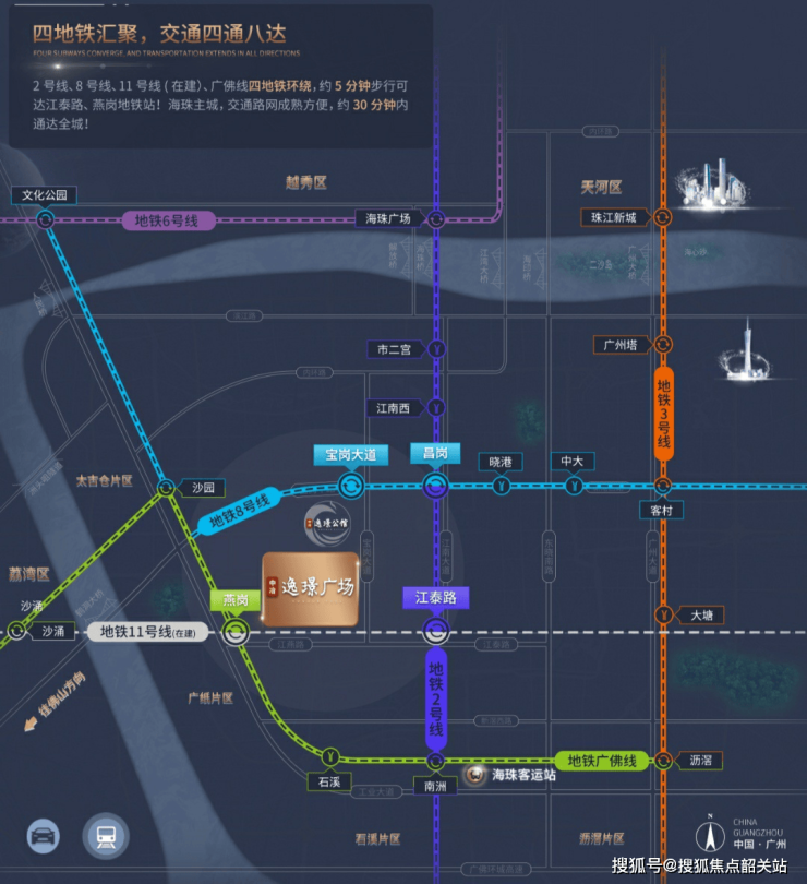中冶·逸璟广场位踞宝岗大道与江燕路交界处,比邻半亿鼎豪住区,四地铁环绕,一步尽享海珠四大商圈醇熟生活配套。