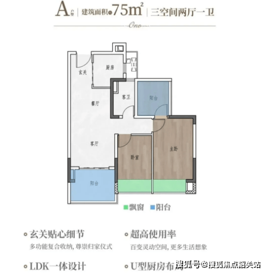 建面约75㎡3房2厅1卫:该户型为紧凑实用型三房,专为年轻家庭或首次置业者设计。通过合理的空间规划,在有限面积内实现三房功能,客厅连接阳台,采光充足;卧室布局方正,预留充足收纳空间,空间利用率拉满,满足小家庭日常居住需求。