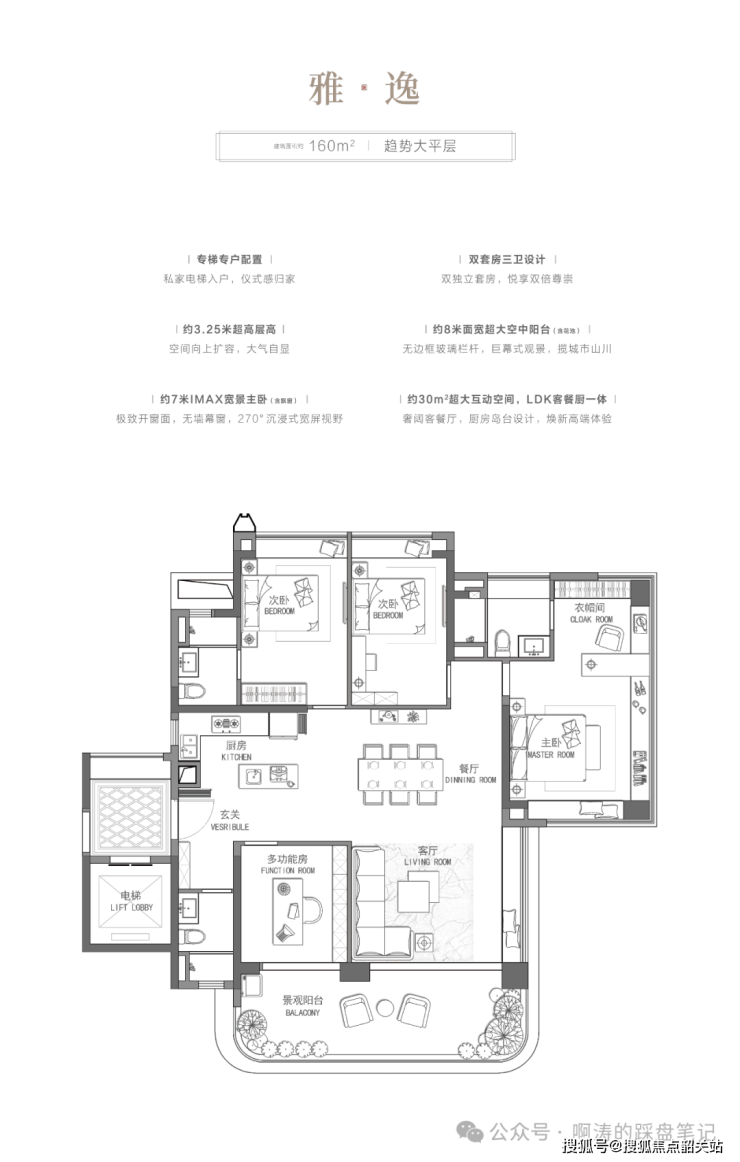 大平层产品主打“全能第四代住宅”概念,强调空间的宽敞与功能的完备。