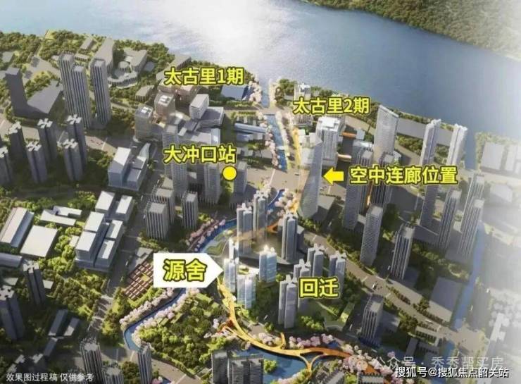 小区内部设计了中央园林,外部则依托规划中的9万㎡中央公园,形成了“内园外景”的双重景观体系。围合式布局不仅保证了每一户都能拥有良好的采光与通风条件,更重要的是创造了丰富的公共活动空间。在楼栋之间,规划有空中连廊和天桥系统,这些设计不仅仅是交通通道,更是连接社区内外、串联各个功能节点的纽带。通过这条空中走廊,业主可以便捷地到达附近的公园、古村、地铁站以及太古里商业区,极大地提升了出行的便利性与安全性。