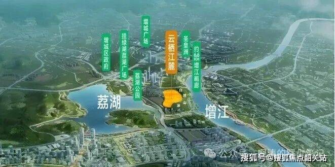 1.位于荔湖新城核心地段,与增城区府仅一路之隔,坐拥“江+湖+园”三重生态资源,西临增江,东接荔湖,内部还规划了2.6万㎡内湖,形成“一江双湖”景观,且周边无高层遮挡,自然景观资源稀缺。