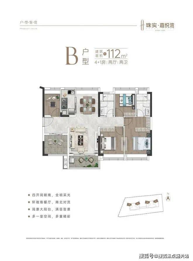 珠实·嘉悦湾的户型设计注重实用与舒适,特别适合改善型购房需求。89㎡的3+1房和112㎡的4+1房是项目的主力户型,设计方正且富有创意。每个户型均为全南向布局,客厅、餐厅及卧室均拥有良好的采光与通风,生活空间的每一部分都得到充分利用。特别是3+1房与4+1房的设计,能够满足现代家庭对多功能空间的需求,如书房、客房等,极大提升了居住的舒适性与灵活性。