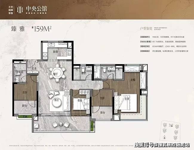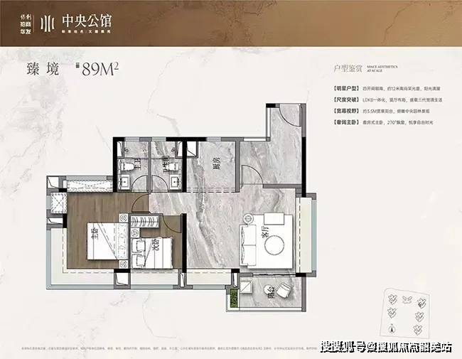户型革新:89㎡三房4开间朝南+270°转角飘窗,159㎡楼王双主卧套间,部分户型得房率105%。