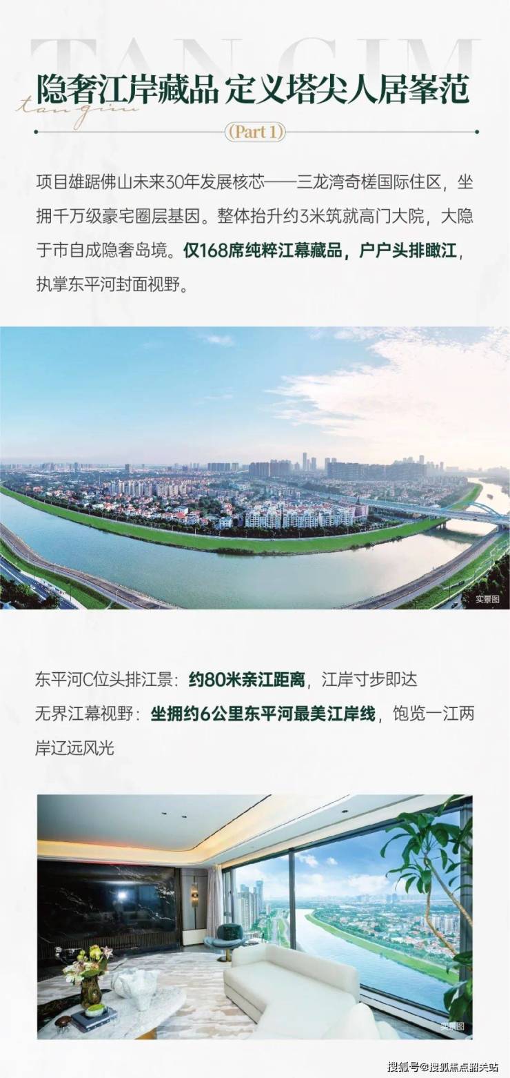 保利三龙湾天珺由央企保利开发,定位藏品级江幕奢宅,项目占地面积与建筑面积适配高端居住需求,容积率与绿化率规划保障舒适居住体验。项目以 “江幕生活” 为核心理念,在户型设计、景观营造、交付标准上均以顶级标准打造。高品质贴膜交付工艺是其特色亮点,从建筑外立面到细节处理都体现精工理念。依托三龙湾 CBD 区位优势与一线江景资源,项目致力于打造成为佛山豪宅标杆,为业主提供集舒适居住、身份象征于一体的世界藏品级住宅。