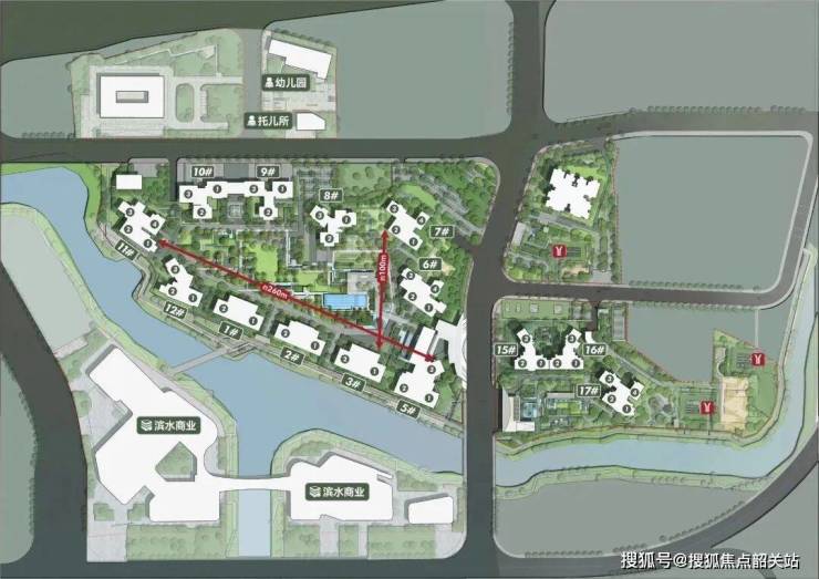 ◎水岸绿洲:集合商业,一河两岸的滨水公园,环绕社区的公园集群,集艺术、商业、运动为一身的水岸绿洲