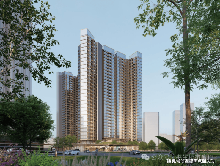 楼栋规划:项目共规划 4 栋高层住宅,采用围合式布局,楼栋层高为 31 至 32 层