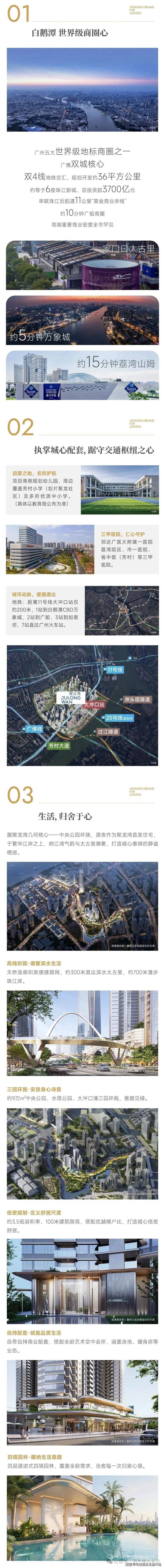 聚龙湾片区作为广州主城核心连片更新标杆板块,拥有长期稳定的城市发展红利,板块价值具备持续上升空间。政府主导全域统筹规划,叠加国企珠实与太古地产双强运营,千亿级规划逐步落地兑现,滨水太古里、中央生态公园、总部办公集群、滨江岸线升级、城市路网完善、河涌绿道改造等配套持续落成。广佛同城化持续深化,白鹅潭作为广佛交界核心枢纽,承接广佛人流、商业、产业资源双向互通,未来区域商务集聚度、人居热度、配套能级将持续提升。项目作为片区首发住宅住区,优先占有板块核心地铁、公园、太古里商业、滨江生态核心资源,随着片区更新建设逐步完善,城市界面持续优化,配套全面成熟,资产保值增值属性稳固,长期人居价值与不动产价值支撑充足。
