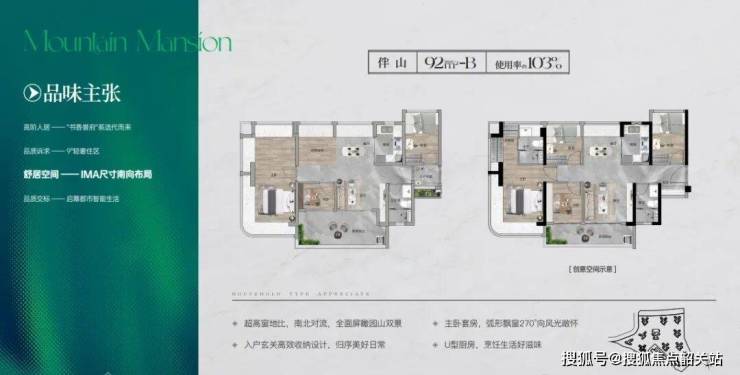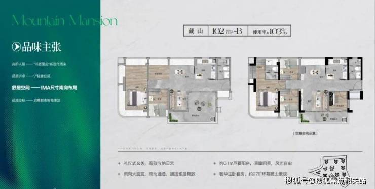项目南向三面环山,为了充分利用这自然山景,小区采用Y型中庭中轴设计,配套吊层面积最大化,即每栋楼的山景视线能实现最大化的同时,楼栋间的采光和通风也能达到最佳状态。更关键的是,户户朝南,即便是最小面积也是南向采光。