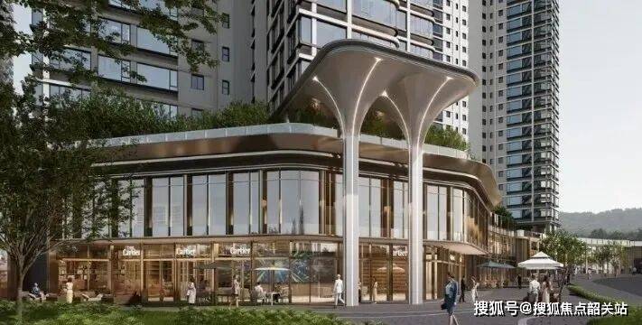 小区底商也特别特别有设计感,从小区花园延伸出的挑台满足业主日常需求。