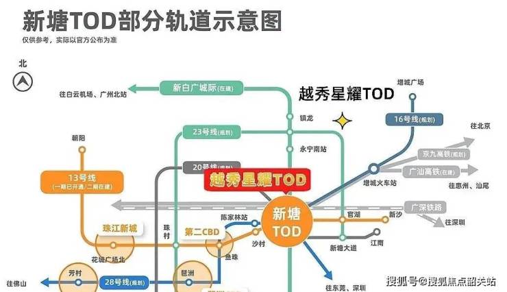 越秀星耀TOD坐落在广州东部中心的新塘板块,这里不仅是连接广州与粤东地区的交通枢纽,也是城市向东扩展的重要节点。新塘站现已实现地铁13号线、穗莞深城际铁路以及广汕高铁的无缝对接,未来还将进一步融入琶洲支线、新白广城际等多条轨道交通线路,形成一个“10轨交汇”的超级枢纽。从这里出发,不仅可以快速抵达珠江新城等核心商圈,还能轻松通达白云机场、深圳机场乃至香港,真正实现了上天入地(下了飞机就搭高铁、地铁、城际),轻松对话全世界。除了发达的交通网络外,新塘还聚集了大量的高端城市资源,如广汇新世界金融中心、335金融中心等摩天大楼地标群,以及永旺梦乐城、合生汇等多个繁华商圈。可以说,越秀星耀TOD不仅占据了地理上的优势,更享受到了区域发展的红利,是一个名副其实的繁华都市黄金地段。