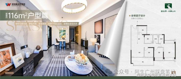 新世界·四季山水2026年新规户型以全南向设计为核心,兼顾奢阔尺度与人性化细节,打造92-141㎡三至五房刚需友好型产品,每一处设计都贴合家庭居住需求,彰显匠心与品质。户型核心亮点突出,全部采用全南向布局,采光通风俱佳,有效提升居住舒适度,同时依托新规设计实现超高使用率,114%-118%的使用率堪称科学城标杆。其中141㎡户型可打造五房双套间,空间利用率远超同板块竞品,适配多人口改善家庭;92㎡三房两卫户型,布局方正、无浪费面积,精准满足刚需家庭的基础居住需求,290万起的总价门槛,让刚需群体轻松实现三房置业梦想。所有户型均采用精装修交付,装修标准约2000元/㎡,选材优质、工艺精湛,搭配人性化收纳设计,可充分收纳家庭杂物,视觉上更显通透整洁。不过项目也存在明显短板,社区楼栋间距偏窄,低楼层采光、视野易受遮挡,影响居住舒适度。