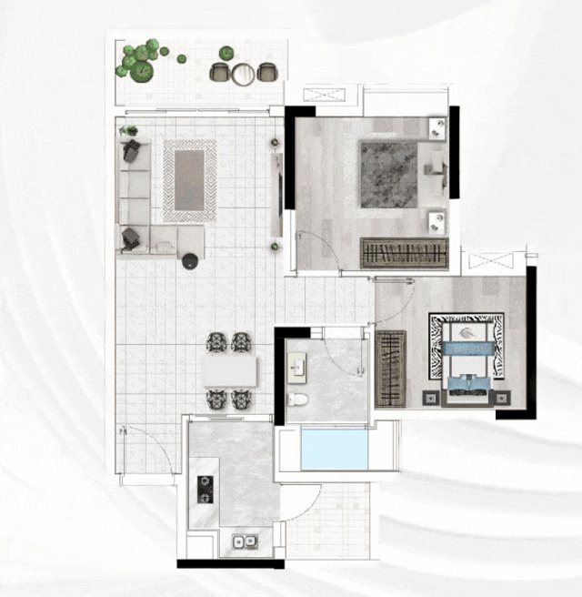如果追求居住的空间感,也可以考虑建面约111㎡的大三房,实现更阔绰的居住体验。约6.5米的奢阔大阳台,更是带来极致的景观视野,美景一览无遗。