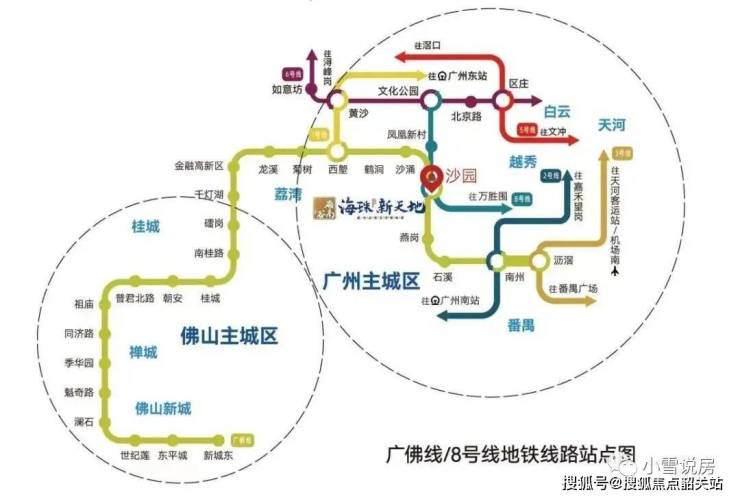 ➢ 南联番禺:南洲站转乘2号线,8站到广州南站;西达佛山:5站金融高新区,6站千灯湖