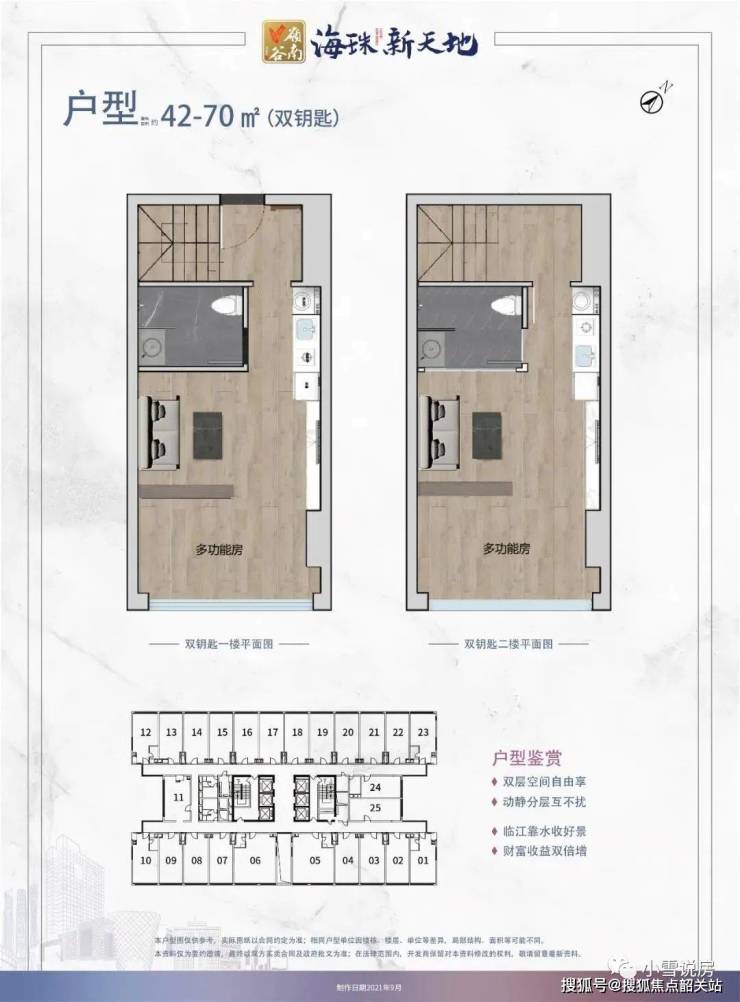 建筑面积约42-92平方米的复式灵动空间,现房发售,是罕有的城芯双地铁真上盖珍稀资产;复式层高4.5米,超高使用率,户型涵盖双钥匙、三房和四房,11米豪华挑高大堂,奢华大气;梯户比达到
