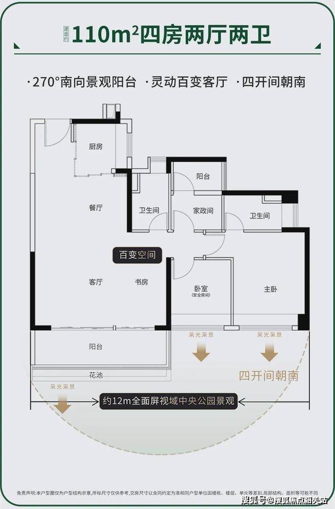 1. 建面约110㎡四房两厅两卫