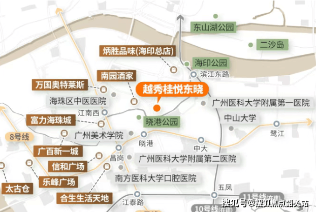 桂悦东晓地处海珠区核心地段,邻近地铁8号线与2号线,交通便利。周边环绕着江南西商圈、中大商圈及太古商圈等多个商业中心,生活设施完善。同时,项目靠近晓港公园,未来该公园将进行全方位升级,围绕马涌晓港公园段、云桂桥等山水人文景观元素,打造新旧结合的花市动线,成为“广州花市”的新名片。