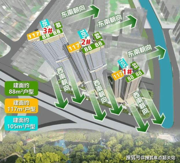 项目主打88-105-117平方米三个面积段的户型,所有户型均采用东南或西南朝向布局,确保了良好的采光和通风条件。这些户型设计不仅高效利用空间,还融入了广府文化元素,如广雕、广绣和广府花窗,使建筑兼具美观与文化底蕴。