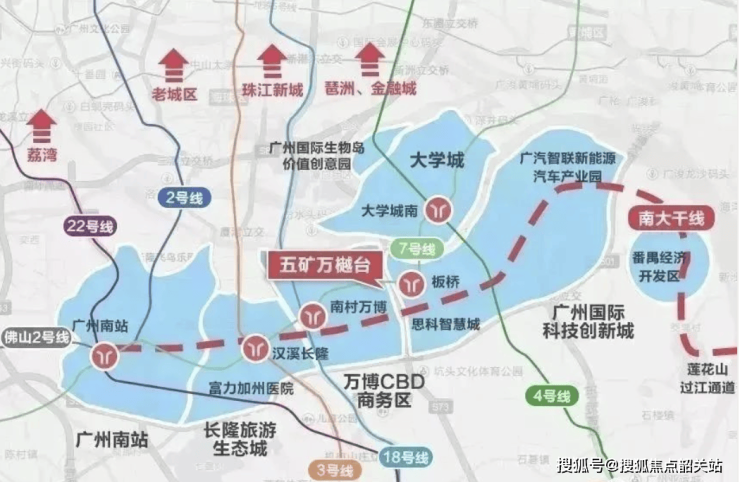 五矿万樾台地处广州南拓发展的核心区域——万博CBD腹地,地理位置极具战略优势。项目距离地铁7号线板桥站约1.5公里,步行或短途车程即可抵达。通过该线路,两站可达南村万博站,换乘18号线快速直达珠江新城;三站至汉溪长隆站,可转乘3号线进入广州市中心;七站即达广州南站,实现湾区城市群间的高效联动。自驾方面,项目紧邻兴业大道、番禺大道北等主干道,接驳华南快速后,前往珠江新城仅需约40分钟,交通四通八达,出行效率极高。无论是日常通勤还是节假日出行,都能轻松覆盖广佛都市圈及珠三角主要城市。