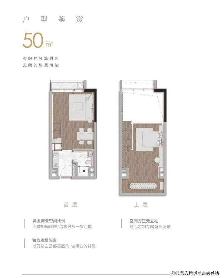 公寓组团分为两大产品,【傲云】组团共计 662 户,分布于 A2、A3、A6 栋,楼栋首层打造独立奢华大堂,4-28 层为公寓产品,2 梯 4 户舒适配比,居住密度低,适合年轻情侣、单身青年自住,或是轻资产投资出租;【云翼】组团仅 1 栋稀缺楼栋,总计 300 户,建面约 50-80㎡小户型为主,3-17 层为公寓产品,4 梯 20 户高性价比规划,低总价、低门槛,刚需过渡、婚前置业、小型办公都十分合适,作为白云新城 73 万方综合体头排封面资产,后期出租回报率稳定,资产保值性强。