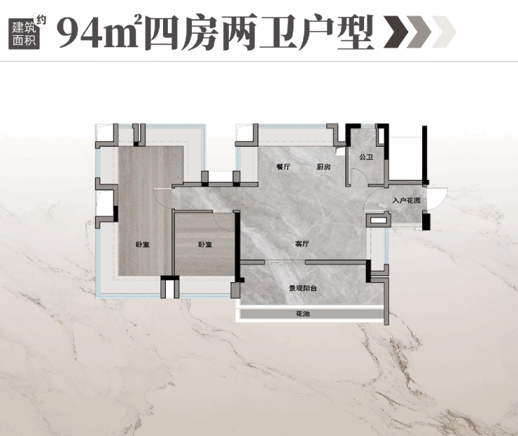 户型区间:建面约74㎡至125㎡(涵盖极致刚需三房至舒适四房双主套)