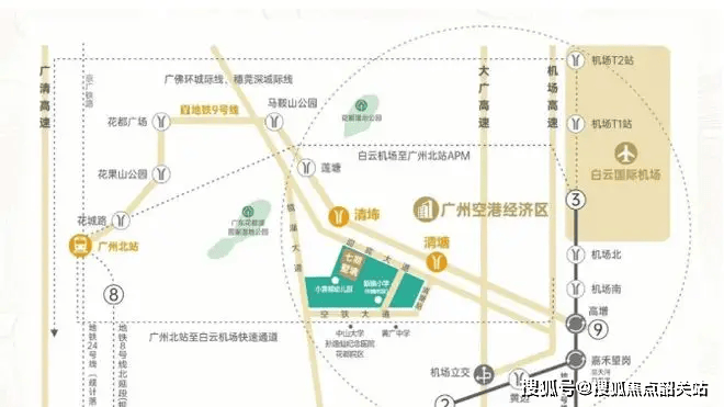 交通升级:广花快速路全线通车(车程15分钟直达白云新城)、地铁9号线清塘站/青布站双站点覆盖(直线距离800米);