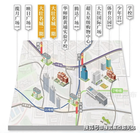 二、交通配套:6+7+21 三地铁交汇,通达全城无需等待